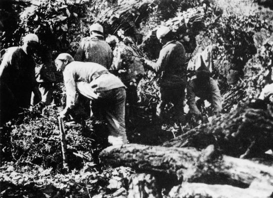 1933年10月,四川軍閥劉湘和楊森在蔣介石的指使下,向紅四方面軍發(fā)動“六路圍攻”。這時,張思德參加了紅軍,被編入長勝縣獨立團。入伍第3天,張思德便參加了戰(zhàn)斗。在戰(zhàn)斗中,張思德用一支步槍干掉了敵人的機槍手,首戰(zhàn)立功。在隨后的關口梁戰(zhàn)斗中,張思德參加尖刀班,冒著彈雨槍林,和戰(zhàn)友搭人梯,攀上寨頂,炸開寨門,為部隊打開了通路。接著,他又帶領6個戰(zhàn)友,扼守一個山包,粉碎了敵軍兩個排的多次進攻。