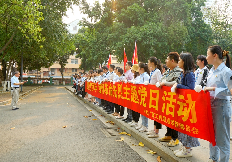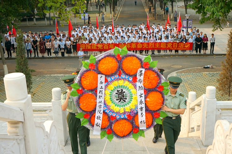 為慶祝中國(guó)共產(chǎn)黨成立100周年,重溫黨的光輝歷史,繼承和發(fā)揚(yáng)黨的光榮傳統(tǒng)和優(yōu)良作風(fēng),進(jìn)一步加強(qiáng)黨史學(xué)習(xí)教育,弘揚(yáng)愛(ài)國(guó)主義精神,傳承紅色基因,4月1日,在清明節(jié)即將來(lái)臨之際,學(xué)校黨委組織師生黨員、優(yōu)秀團(tuán)員代表赴平果市革命烈士陵園開(kāi)展“迎接建黨百年·緬懷革命先烈 ”主題黨日活動(dòng)。學(xué)校黨委副書(shū)記、副校長(zhǎng)胡細(xì)木,校長(zhǎng)助理黃秋霞,黨委辦公室副主任黃香琴及各黨支部書(shū)記全體師生黨員參加此次活動(dòng)。