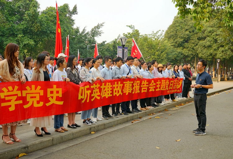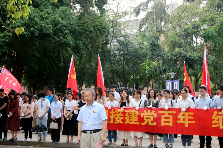 黨委副書(shū)記、副校長(zhǎng)胡細(xì)木致辭,他指出開(kāi)展此次“迎接建黨百年·緬懷革命先烈”主題黨日活動(dòng),是學(xué)校迎接建黨百年、開(kāi)展黨史學(xué)習(xí)教育的重要活動(dòng)之一,也是一堂生動(dòng)的大學(xué)生現(xiàn)場(chǎng)黨史思政課。革命先烈的英雄事跡是激勵(lì)我們奮發(fā)進(jìn)取、砥礪前行的寶貴精神財(cái)富,全體師生要牢記歷史,繼承和發(fā)揚(yáng)革命先烈的光榮傳統(tǒng)和愛(ài)國(guó)主義精神,黨員要時(shí)刻牢記共產(chǎn)黨員的身份和責(zé)任,立足本職,發(fā)揮黨員先鋒模范作用,帶領(lǐng)學(xué)校廣大教師和青年大學(xué)生積極作為,辦實(shí)事、開(kāi)新局,以昂揚(yáng)姿態(tài)建功新時(shí)代、奮進(jìn)新征程,用優(yōu)異的成績(jī)迎接建黨一百周年,弘揚(yáng)新時(shí)代精神,為實(shí)現(xiàn)中華民族偉大復(fù)興的中國(guó)夢(mèng)貢獻(xiàn)力量。