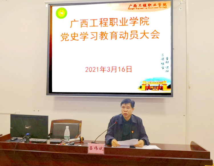 3月16日,廣西工程職業(yè)學(xué)院召開黨史學(xué)習(xí)教育動(dòng)員大會(huì),學(xué)校黨委書記呂偉斌出席會(huì)議并作動(dòng)員講話,會(huì)議由學(xué)校黨委副書記、副校長(zhǎng)胡細(xì)木主持,學(xué)校校長(zhǎng)唐林、副校長(zhǎng)羅艷妮、校長(zhǎng)助理黃秋霞等校級(jí)領(lǐng)導(dǎo),全體教職工黨員、在校學(xué)生黨員等參加會(huì)議。