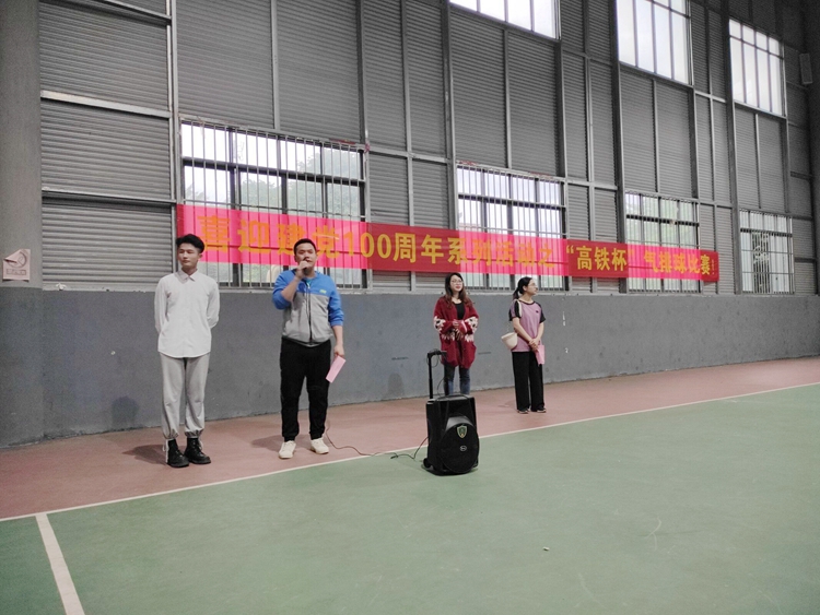 鐵道與航空學(xué)院分團(tuán)委書記黃羽宣讀比賽規(guī)則后,“喜迎建黨100周年系列活動之第一屆‘高鐵杯’氣排球比賽”正式開始。