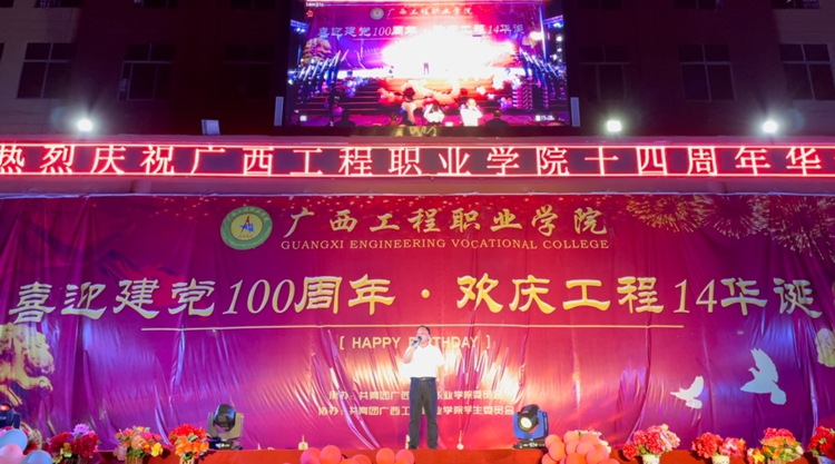 2021年4月20日晚,學(xué)校在魯班廣場(chǎng)舉行“喜迎建黨100周年·歡慶工程14華誕”校慶文藝晚會(huì),共青團(tuán)平果市委員會(huì)書(shū)記董亦輝,大學(xué)管委會(huì)羅永林主任、農(nóng)浩副主任,學(xué)校黨政領(lǐng)導(dǎo)班子,學(xué)校附屬實(shí)驗(yàn)中學(xué)領(lǐng)導(dǎo)以及社會(huì)各界領(lǐng)導(dǎo)、嘉賓出席晚會(huì)現(xiàn)場(chǎng),與全體師生共慶建校十四周建,喜迎建黨100周年。