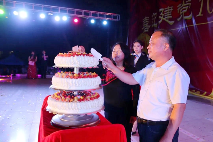 晚會(huì)上,學(xué)校紀(jì)委書(shū)記李益和副校長(zhǎng)林艷代表學(xué)校,在《祝你生日快樂(lè)》的音樂(lè)聲中走上舞臺(tái),共同切開(kāi)學(xué)校十四歲生日蛋糕,與全校師生同慶學(xué)校十四歲生日,喜迎建黨100周年!