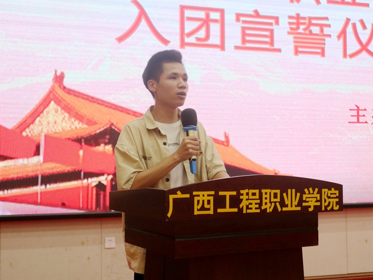新團員代表傅政豪同學發(fā)言,對成為一名新團員感到非常激動和自豪,并表達了今后要遵守團章,履行團員義務,在學習、工作和生活中以身作則,做好表率,努力學習,扎實掌握為人民服務的本領。
