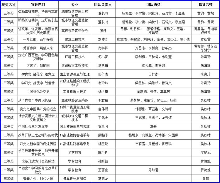 附:廣西高校思政課共建第六組首屆大學生理論宣講比賽廣西工程職業(yè)學院選拔賽獲獎名單