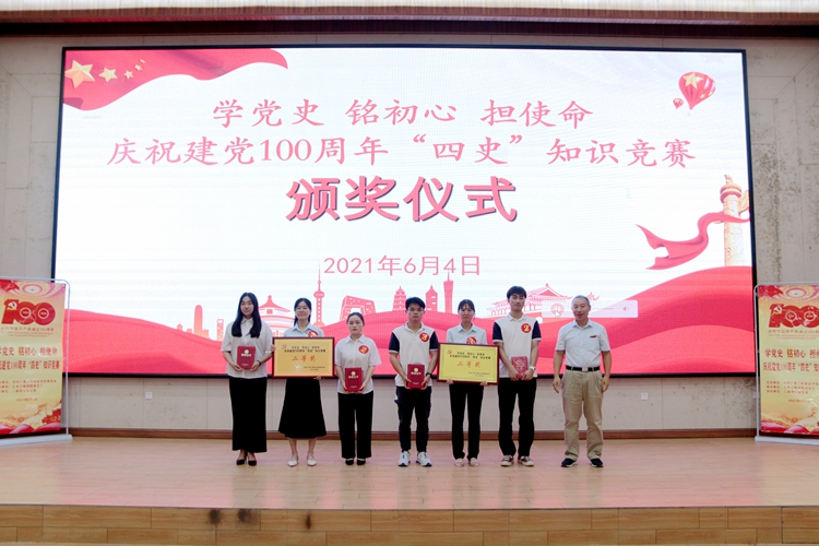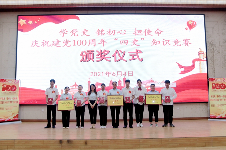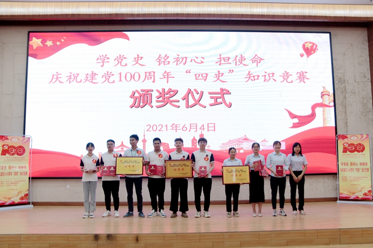 學四史,憶初心,傳精神,擔使命。為引導廣大師生學習黨史、新中國史、改革開放史、社會主義發(fā)展史,不忘初心感黨恩、旗幟鮮明跟黨走,汲取智慧力量,堅定理想信念,開拓創(chuàng)新,努力推進學校的高質量發(fā)展,以更加優(yōu)異的成績?yōu)辄h的百年華誕獻禮。2021年6月4日晚,學校在圖文信息大樓一樓學術報告廳舉行“學黨史 銘初心 擔使命——慶祝建黨100周年‘四史’知識競賽”。