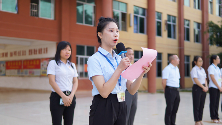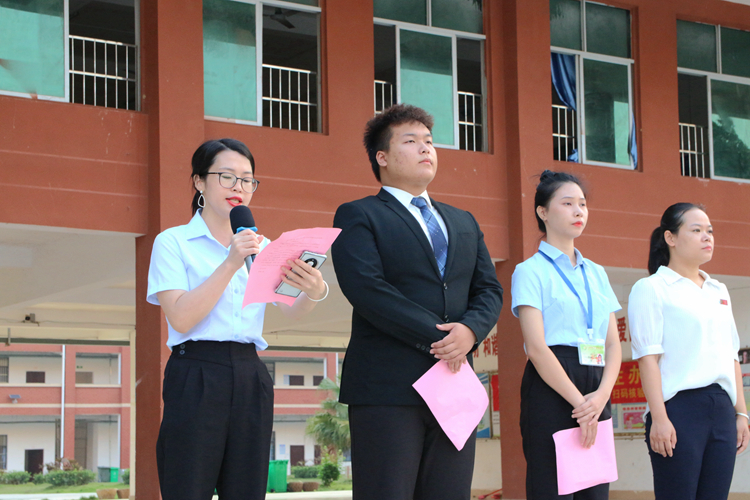 校長(zhǎng)助理黃秋霞主持升旗儀式