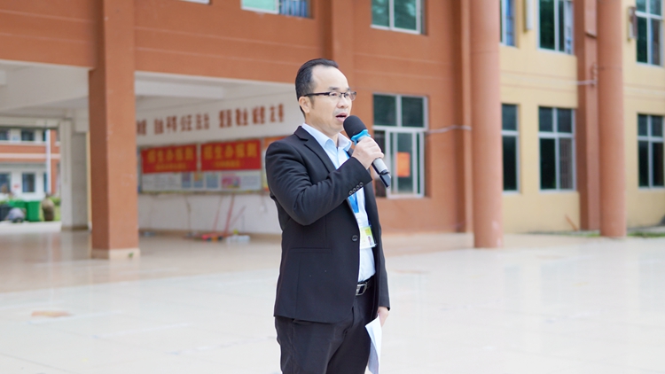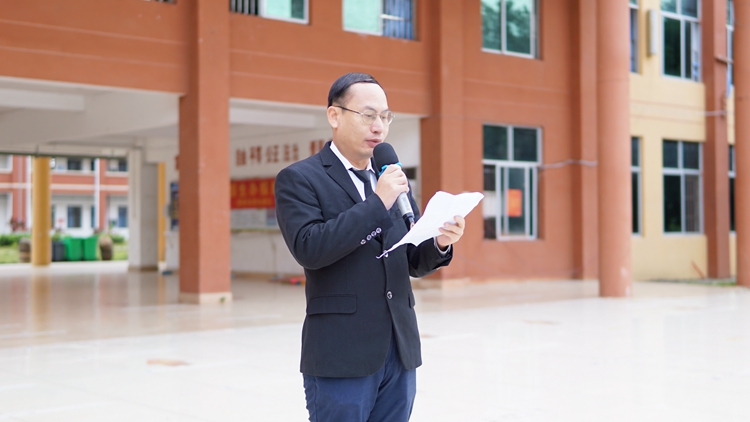 學(xué)生代表黃世云發(fā)表了以愛黨愛國愛校為主題的國旗下演講