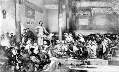 1929年12月底,中國共產(chǎn)黨紅軍第4軍第九次代表大會在福建省上杭縣古田召開。古田會議在黨的歷史上以自我革命的方式糾正了黨和紅軍自身存在的問題,使正確的建黨建軍原則逐步得以實行,顯示了我們黨極強(qiáng)的自我糾錯和自我修復(fù)能力。圖為油畫《古田會議》。