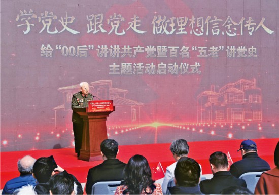 2021年2月23日,“學黨史 跟黨走 做理想信念傳人——給‘00后’講講共產黨暨百名‘五老’講黨史主題活動”在位于上海市嘉定區(qū)的外岡游擊隊紀念館正式啟動。本次活動拉開了上海教育系統(tǒng)黨史學習教育的序幕,將組織包括新四軍老戰(zhàn)士在內的一批老干部、老戰(zhàn)士、老專家、老教師、老模范走進校園,以“校外輔導員”的方式,參與大學和中小學的思想政治教育,教育引導青少年始終聽黨的話、永遠跟黨走。圖為上海市新四軍歷史研究會名譽會長、九旬新四軍老戰(zhàn)士阮武昌在活動現(xiàn)場講述新四軍的抗日故事。 新華社記者 劉穎/攝