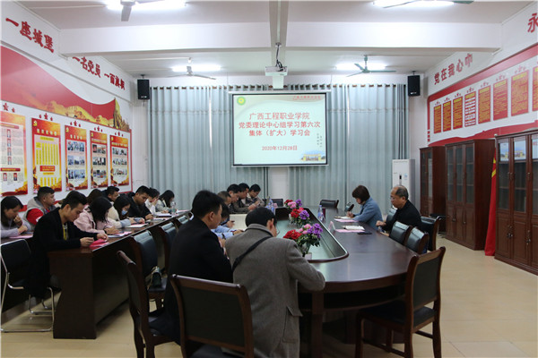 12月28日,我校在圖書館黨員活動室召開黨委理論學習中心組第六次集體(擴大)學習會,教育廳民族教育處處長覃艷娟、百色市委教育工委、市教育組黨組成員、副局長陳詩明等兩位領(lǐng)導(dǎo)參加巡聽旁聽,我校全體黨委班子成員,各支部書記、支委參加學習會。會議由黨委書記呂偉斌主持。