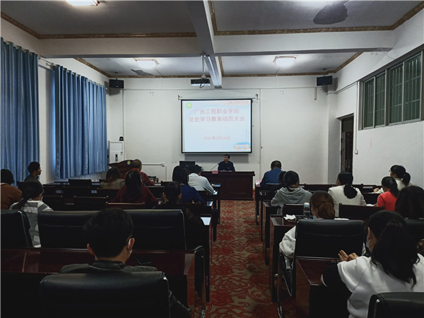3月16日,廣西工程職業(yè)學(xué)院召開黨史學(xué)習(xí)教育動員大會,學(xué)校黨委書記呂偉斌出席會議并作動員講話,會議由學(xué)校黨委副書記、副校長胡細(xì)木主持,學(xué)校校長唐林,副校長羅艷妮,校長助理黃秋霞等校級領(lǐng)導(dǎo)、全體教職工黨員、在校學(xué)生黨員等參加會議。