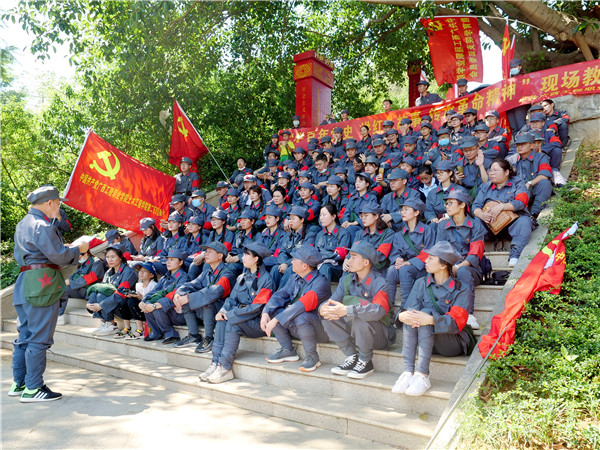 在主題園階梯大榕樹下開展了一場生動的現(xiàn)場微黨課教學(xué)活動。廣大黨員干部席地而坐,聚精會神、全神貫注聆聽學(xué)校黨委副書記、副校長胡細(xì)木講述百色起義先輩們在曾經(jīng)的烽火歲月“革命理想高于天”的豪情壯志,為了人民幸福和民族獨(dú)立解放而毅然革命的英勇無畏的犧牲精神和偉大的奉獻(xiàn)精神,由此鑄就的“百折不撓、實(shí)事求是、依靠群眾、團(tuán)結(jié)奮斗”的百色起義精神。