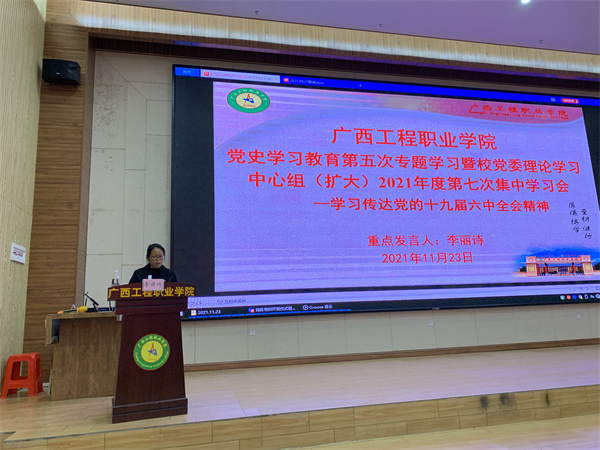 會上,校黨委書記呂偉斌傳達(dá)了黨的十九屆六中全會精神。他指出全體黨員要進(jìn)一步提高政治站位,深刻領(lǐng)會學(xué)習(xí)貫徹習(xí)近平總書記視察廣西時的重要講話精神的重要意義,把學(xué)習(xí)貫徹總書記重要講話精神轉(zhuǎn)化到學(xué)校工作建設(shè)中。學(xué)習(xí)好、宣傳好、貫徹好全會精神,是當(dāng)前和今后一個時期的重大政治任務(wù)。
