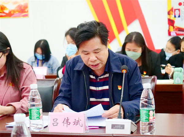 呂書記強(qiáng)調(diào)指出,班子成員要帶頭進(jìn)一步提高政治站位,全面學(xué)習(xí)貫徹習(xí)近平新時(shí)代中國(guó)特色社會(huì)主義思想,抓好常態(tài)化黨史學(xué)習(xí)教育,深刻感悟“兩個(gè)確立”的決定性意義,深刻感悟黨堅(jiān)持把馬克思主義同中國(guó)具體實(shí)際相結(jié)合、同中華優(yōu)秀傳統(tǒng)文化相結(jié)合的非凡歷程,牢固樹立正確的黨史觀。要堅(jiān)持用習(xí)近平新時(shí)代中國(guó)特色社會(huì)主義思想武裝頭腦、指導(dǎo)實(shí)踐、推動(dòng)工作,帶頭真學(xué)、真信、真懂、真用,帶頭牢記我們黨是什么、要干什么這個(gè)根本問(wèn)題,心懷 “國(guó)之大者”,不斷增強(qiáng)“四個(gè)意識(shí)”,堅(jiān)定“四個(gè)自信”,做到“兩個(gè)維護(hù)”。要堅(jiān)持貫徹新發(fā)展理念,履職盡責(zé)、擔(dān)當(dāng)作為,聚焦新冠肺炎疫情防控、保持經(jīng)濟(jì)發(fā)展、深化改革開放、維護(hù)社會(huì)穩(wěn)定等正在做的工作,不折不扣把黨中央決策部署落實(shí)到位;帶頭踐行以人民為中心的發(fā)展思想,尊重群眾意愿,為群眾辦實(shí)事解難題,有效保障改善民生,增強(qiáng)人民群眾獲得感幸福感安全感,確保黨永遠(yuǎn)保持同人民群眾的血肉聯(lián)系;要堅(jiān)定扛起管黨治黨的政治責(zé)任,帶頭深刻汲取黨史中正反兩方面經(jīng)驗(yàn),履行全面從嚴(yán)治黨責(zé)任,旗幟鮮明講政治,嚴(yán)守黨的政治紀(jì)律和政治規(guī)矩,落實(shí)中央八項(xiàng)規(guī)定及其實(shí)施細(xì)則精神,持續(xù)用力糾“四風(fēng)”、樹新風(fēng)。要深入學(xué)習(xí)貫徹習(xí)近平總書記關(guān)于教育的重要論述,特別是對(duì)發(fā)展職業(yè)教育的重要批示精神,以及視察廣西“4·27”重要講話精神和對(duì)廣西工作的系列重要指示精神,推進(jìn)黨建工作與業(yè)務(wù)工作深度融合,勇于擔(dān)當(dāng)、攻堅(jiān)克難,統(tǒng)籌抓好新冠肺炎疫情防控和學(xué)校各項(xiàng)工作,確保中央精神和自治區(qū)黨委、百色市委各項(xiàng)決策部署在學(xué)校落地生根,勇毅前行,努力開創(chuàng)新時(shí)代廣西工程職業(yè)學(xué)院高質(zhì)量發(fā)展新局面,為建設(shè)新時(shí)代中國(guó)特色社會(huì)主義壯美廣西作出新的更大貢獻(xiàn),以優(yōu)異成績(jī)迎接黨的二十大勝利召開。