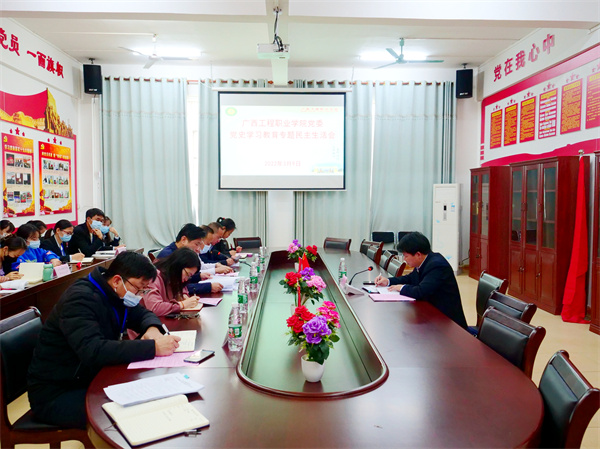 根據(jù)百色市紀(jì)委機(jī)關(guān)、組織部、黨史學(xué)習(xí)教育領(lǐng)導(dǎo)小組統(tǒng)一部署和百色市教育工委要求,2022年3月9日上午,我校在圖書館一樓黨員活動(dòng)室召開2021年度黨員領(lǐng)導(dǎo)干部黨史學(xué)習(xí)教育專題民主生活會(huì)。百色市委教育工委黨史學(xué)習(xí)教育指導(dǎo)組李飛勇同志蒞臨會(huì)議全程指導(dǎo)。學(xué)校黨委書記呂偉斌,黨委委員、董事長(zhǎng)李益,黨委副書記黃秋霞、紀(jì)委書記、副校長(zhǎng)彭高彬以及黨委領(lǐng)導(dǎo)班子其他成員參加會(huì)議,黨委辦公室、各黨支部書記及支委等列席會(huì)議。會(huì)議由黨委書記呂偉斌主持。