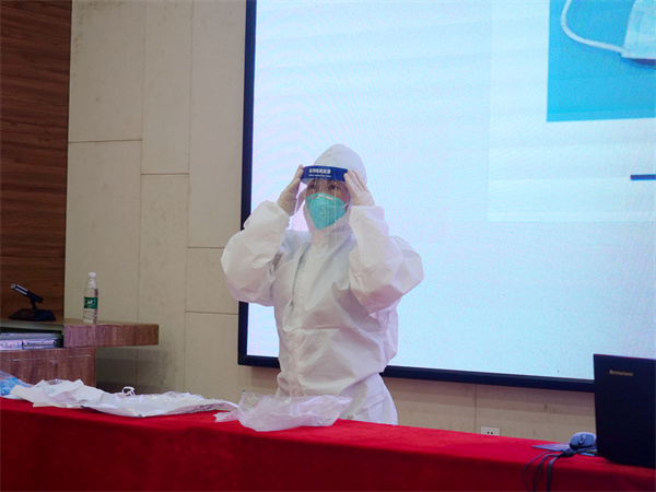 培訓(xùn)會上,專家還就如何科學(xué)佩戴口罩、科學(xué)穿、脫防護(hù)服、科學(xué)洗手等內(nèi)容作了現(xiàn)場演示培訓(xùn)。