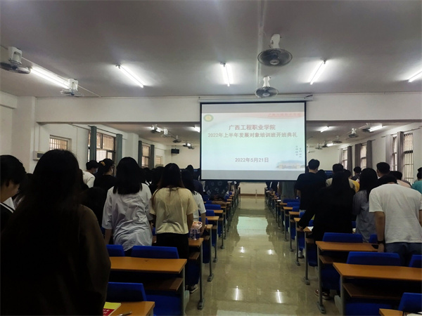 5月21日,廣西工程職業(yè)學(xué)院黨校舉辦2022年上半年發(fā)展對(duì)象培訓(xùn)班,全校共有344名入黨發(fā)展對(duì)象參加培訓(xùn),開班典禮在經(jīng)管樓一樓多媒體教室舉行。開班典禮由學(xué)校黨委副書記黃秋霞主持。