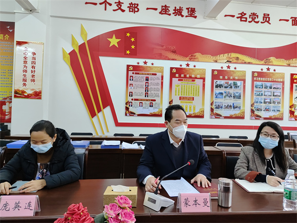 學(xué)校黨委書記蒙本曼向驗(yàn)收檢查組就我?;鶎狱h建“五基三化”攻堅(jiān)年行動任務(wù)完成的開展情況、特色經(jīng)驗(yàn)做法、取得主要成效、存在不足及原因分析、今后改進(jìn)措施等方面內(nèi)容進(jìn)行匯報(bào)。