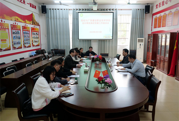 2023年3月15日下午,廣西建設(shè)職業(yè)技術(shù)學(xué)院黨委副書(shū)記曾繁雄一行到我校開(kāi)展結(jié)對(duì)幫扶高校黨建交流活動(dòng),我校黨委書(shū)記蒙本曼出席結(jié)對(duì)幫扶高校黨建交流活動(dòng),各黨(總)支部書(shū)記參加兩校黨建工作經(jīng)驗(yàn)交流座談會(huì)。