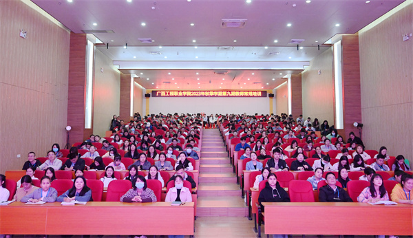 偉大的教育家雅斯貝爾斯曾說:“教育的本質(zhì)是一棵樹搖動(dòng)另一棵樹,一朵云推動(dòng)另一朵云,一個(gè)靈魂喚醒另一個(gè)靈魂。”為深入學(xué)習(xí)宣傳貫徹黨的二十大精神,加強(qiáng)學(xué)校師德師風(fēng)建設(shè),打造高素質(zhì)教師團(tuán)隊(duì),引導(dǎo)廣大教師做“有理想信念、有道德情操、有扎實(shí)學(xué)識(shí)、有仁愛之心”的“四有”好老師,2023年11月21日,廣西工程職業(yè)學(xué)院舉行2023年秋季學(xué)期第九期教師常規(guī)培訓(xùn)會(huì),黨委副書記黃秋霞作“學(xué)習(xí)黨的二十大精神,爭(zhēng)做‘四有’好老師”主題培訓(xùn)。全體教師參加了培訓(xùn)會(huì)。