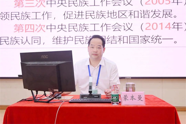 黨委書記、督導(dǎo)專員蒙本曼在講座中,主要從“鑄牢中華民族共同體意識(shí)是新時(shí)代黨的民族工作的主線”和“圍繞鑄牢中華民族共同體意識(shí)創(chuàng)新性開展民族團(tuán)結(jié)進(jìn)步事業(yè)”兩部分,深入淺出回顧了中國(guó)共產(chǎn)黨開展民族工作的發(fā)展歷程,解讀了中央民族工作會(huì)議中提出的“十二個(gè)必須”內(nèi)涵和意義,從理論到實(shí)踐層面詳細(xì)解讀了鑄牢中華民族共同體意識(shí)的核心要義、必然要求、豐富內(nèi)涵、實(shí)踐要求,深刻闡述了如何創(chuàng)新性做好新時(shí)代黨的民族工作。