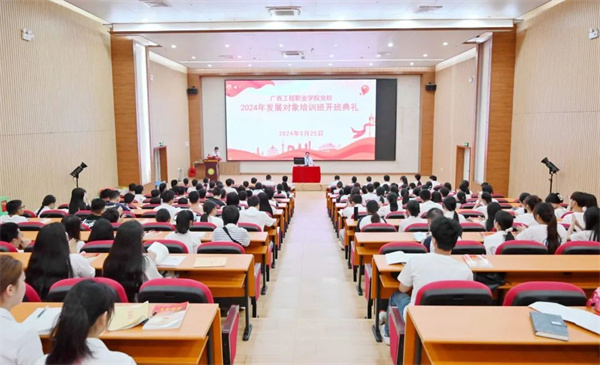 為進(jìn)一步做好黨員發(fā)展工作,嚴(yán)格落實(shí)黨員發(fā)展程序,切實(shí)提、高黨員發(fā)展對(duì)象的理論水平和政治素養(yǎng),確保新發(fā)展黨員的整體質(zhì)量,5月25日,中共廣西工程職業(yè)學(xué)院委員會(huì)黨校2024年黨員發(fā)展對(duì)象培訓(xùn)班開(kāi)班典禮在圖文信息大樓一樓學(xué)術(shù)報(bào)告廳舉行,黨委書(shū)記、督導(dǎo)專員蒙本曼同志出席開(kāi)班典禮并講話。開(kāi)班典禮由黨委辦公室副主任黃香琴主持。