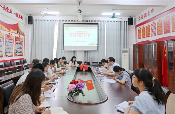 6月27日下午,學校黨委在圖書館一樓黨員活動室,召開2024年第二次黨委理論學習中心組(擴大)學習會,黨委書記、督導專員蒙本昌,黨委副書記黃秋霞,黨委委員、組織部部長、副校長蔣茂麗,黨委委員、宣傳部部長黃麗娟,各黨(總)支部書記、副書記和支委,馬克思主義學院全體教師等參加學習會。黨委書記、督導專員蒙本曼同志主持會議。