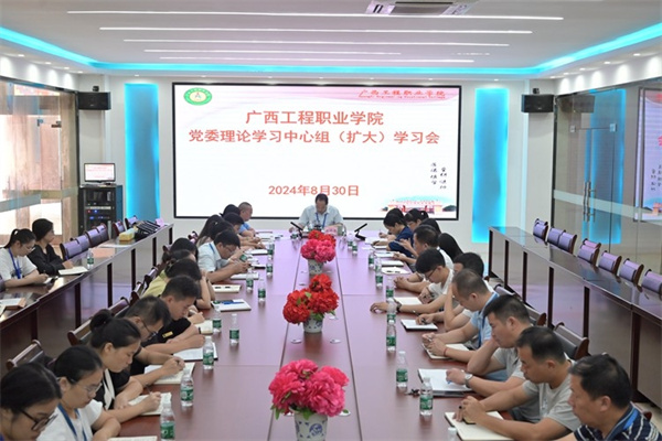8月30日下午,學(xué)校黨委在圖書館一樓大數(shù)據(jù)中心,召開2024年第三次黨委理論學(xué)習(xí)中心組(擴(kuò)大)學(xué)習(xí)會(huì),黨委書記、督導(dǎo)專員蒙本曼,紀(jì)委書記、副校長(zhǎng)彭高彬,黨委副書記黃秋霞,黨委委員、組織部部長(zhǎng)、副校長(zhǎng)蔣茂麗,黨委委員、宣傳部部長(zhǎng)黃麗娟,各黨(總)支部書記、副書記,各部門負(fù)責(zé)人等參加學(xué)習(xí)會(huì)。黨委書記、督導(dǎo)專員蒙本曼同志主持會(huì)議。