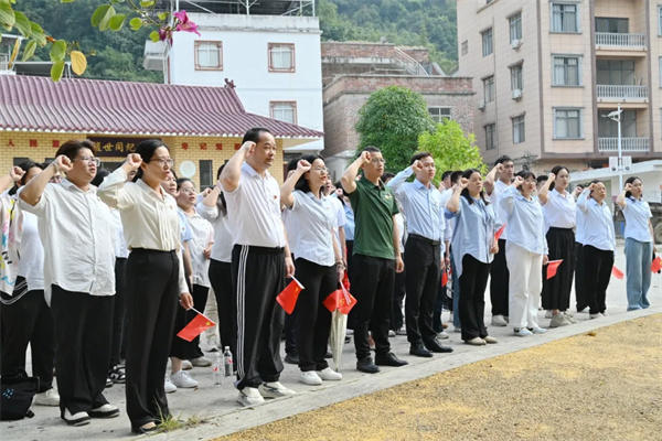 在趙世同紀(jì)念館前面空地,學(xué)校黨委書記、督導(dǎo)專員蒙本曼帶領(lǐng)黨員們重溫入黨誓詞,隨后在現(xiàn)場給黨員們講了一堂精彩的微黨課。