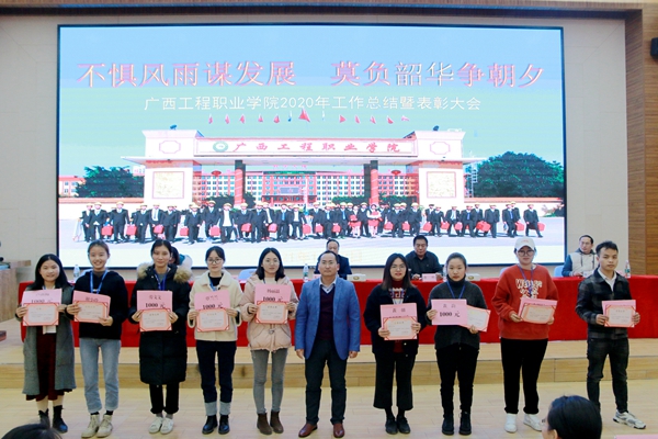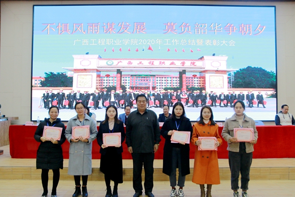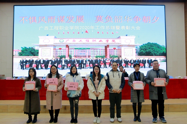 為表彰先進(jìn)、弘揚(yáng)正氣、振奮精神,激發(fā)廣大教職工干事創(chuàng)業(yè)的熱情,根據(jù)年度評(píng)優(yōu)方案及量化指標(biāo),經(jīng)黨政聯(lián)席會(huì)研究,決定對(duì)工作中取得優(yōu)異成績(jī)的24個(gè)先進(jìn)個(gè)人和集體予以表彰。2021年1月28日,廣西工程職業(yè)學(xué)院2020年度工作總結(jié)暨表彰大會(huì)在圖文信息大樓報(bào)告廳舉行。