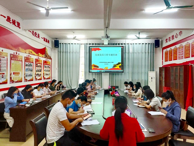 5月14日上午,2022年發(fā)展黨員工作專題培訓(xùn)在學(xué)校黨員活動(dòng)室舉行,學(xué)校黨委辦公室副主任黃香琴作發(fā)展黨員工作專題培訓(xùn)。學(xué)校黨委副書記黃秋霞及學(xué)校各組織書記、支委參加培訓(xùn)。