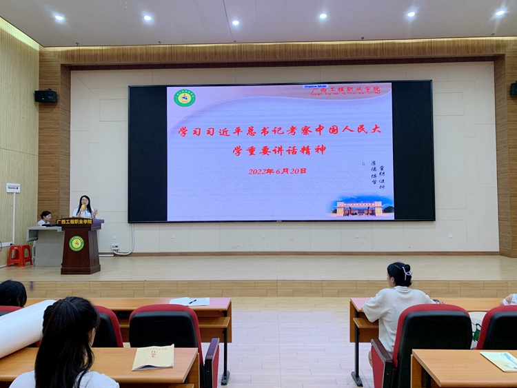 會上,黃秋霞副書記與青馬班學員們一起學習了習近平總書記考察人民大學重要講話精神和習近平總書記在慶祝中國共產(chǎn)主義青年團成立一百周年大會上的重要講話精神。黃副書記要求學員們要深入學習領會總書記的重要講話精神,堅定“四個自信”、做到“兩個維護”,牢記黨的教誨,立志民族復興,努力學習,練就過硬本領,“用腳步丈量祖國大地,用眼睛發(fā)現(xiàn)中國精神,用耳朵傾聽人民呼聲,用內(nèi)心感應時代脈搏”,用實際行動踐行“強國有我”的錚錚誓言,不負韶華,不負時代,不負人民,在青春的賽道上奮力奔跑,爭取跑出當代青年的最好成績,為實現(xiàn)民族復興及學校的建設發(fā)展貢獻青春力量。