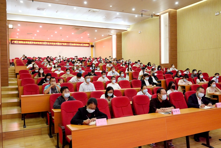 2022年10月16日上午,中國共產(chǎn)黨第二十次全國代表大會在北京人民大會堂隆重召開,廣西工程職業(yè)學(xué)院以集中播放、自發(fā)學(xué)習(xí)等多種形式組織師生分別在圖文信息大樓報(bào)告廳、圖書館學(xué)術(shù)報(bào)告廳以及各個二級學(xué)院會議室收聽收看大會直播,第一時間學(xué)習(xí)領(lǐng)會大會精神。學(xué)校黨委副書記黃秋霞,紀(jì)委書記、副校長彭高彬,副校長羅艷妮、黃德偉,校長助理蔣茂麗等校領(lǐng)導(dǎo)與師生代表一起觀看了大會直播。未能到場的師生也紛紛通過廣播、電視、網(wǎng)絡(luò)等收聽收看會議盛況。