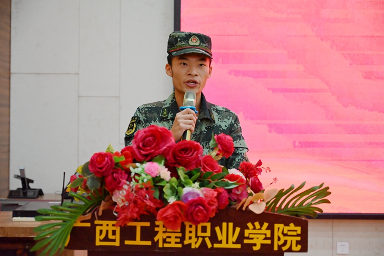 退役復學老生代表汽車與機電學院學生江祖龍發(fā)言,他希望退役復學的新戰(zhàn)友們,夠牢記退伍誓言,不忘初心,始終堅守軍人本色,以部隊的優(yōu)良作風帶動和感染同學們,努力學習科學文化知識,主動參加學校組織的活動。以實際行動引導更多的同學自我教育、自我管理、自我服務(wù),無愧于新時代退役軍人的光榮稱號,在學校這個新戰(zhàn)場做一名優(yōu)秀大學生。