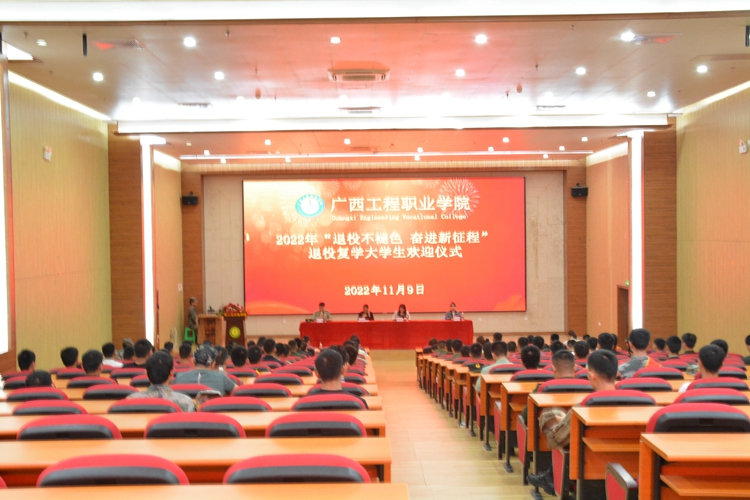 為弘揚廣西工程職業(yè)學院學子積極參軍、報效祖國的優(yōu)良傳統(tǒng),營造尊崇軍人濃厚氛圍,進一步做好退役復學學生的服務(wù)工作,11月9日下午,學校在圖文信息大樓一樓學術(shù)報告廳召開了2022年退役復學大學生“退役不褪色 奮進新征程”歡迎會。黨委副書記黃秋霞,黨委委員、學生工作處副處長李麗詩,國防科技學院副院長李捷、學工處資助科科長范玉翠出席歡迎儀式,各二級學院學生科長、22級輔導員及2022年退役復學大學生參加了歡迎儀式。李捷副院長主持儀式。