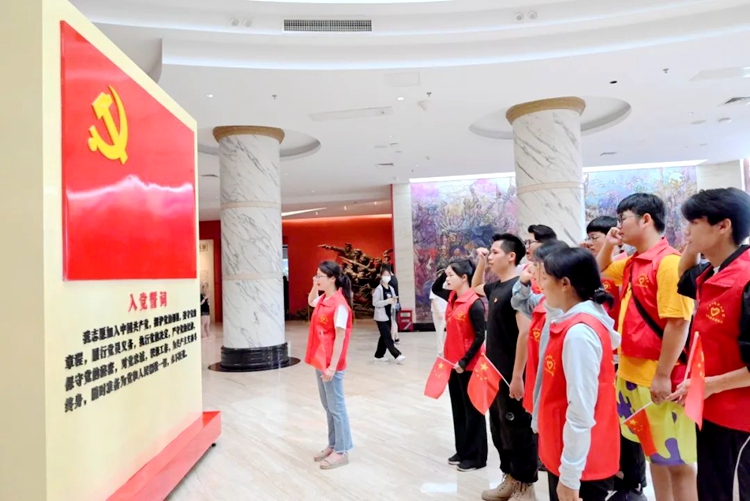 在百色起義紀(jì)念館,實(shí)踐團(tuán)全體師生黨員重溫入黨誓詞,整齊統(tǒng)一、鏗鏘有力的宣誓聲鼓舞了大家對(duì)黨絕對(duì)忠誠(chéng)、絕對(duì)純潔、絕對(duì)可靠和為共產(chǎn)主義奮斗終身的堅(jiān)定信念和決心。