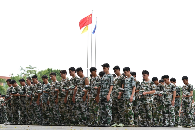 9月18日上午10時(shí)00分,平果市上空防空警報(bào)拉響,在學(xué)校魯班廣場(chǎng)上軍訓(xùn)的2024級(jí)新生及教官肅立默哀,共同牢記歷史,緬懷先烈,吾輩自強(qiáng)!