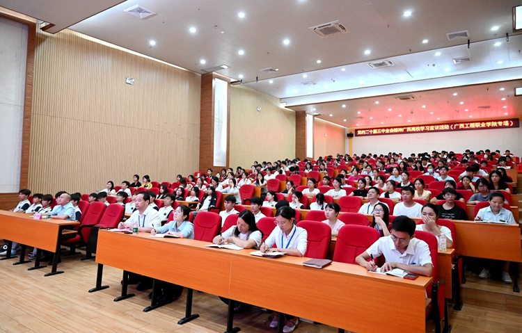 學(xué)校將以此次宣講活動(dòng)為契機(jī),深入學(xué)習(xí)貫徹黨的二十屆三中全會(huì)精神,深刻領(lǐng)會(huì)其精神實(shí)質(zhì)和豐富內(nèi)涵,把全會(huì)精神與學(xué)校各項(xiàng)教育教學(xué)工作實(shí)際相結(jié)合,以更加堅(jiān)定的信念、更加主動(dòng)的擔(dān)當(dāng),為黨育人、為國育才,推動(dòng)學(xué)校事業(yè)高質(zhì)量發(fā)展,為奮力譜寫中國式現(xiàn)代化廣西篇章貢獻(xiàn)廣工程院力量。