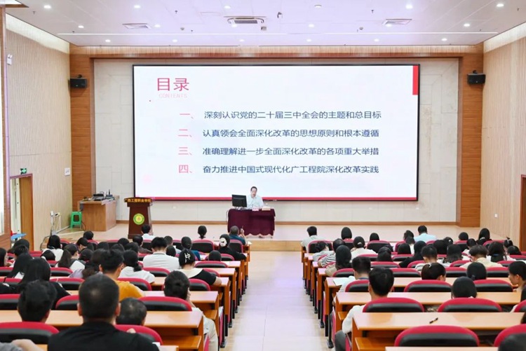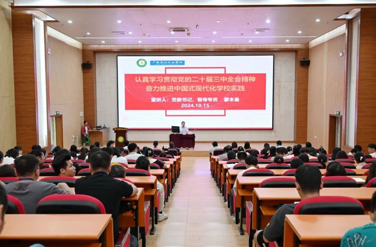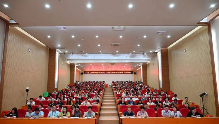 為深入學(xué)習(xí)貫徹黨的二十屆三中全會精神,10月15日下午,在圖文信息大樓一樓學(xué)術(shù)報告廳,廣西工程職業(yè)學(xué)院舉行學(xué)習(xí)貫徹黨的二十屆三中全會精神宣講會。