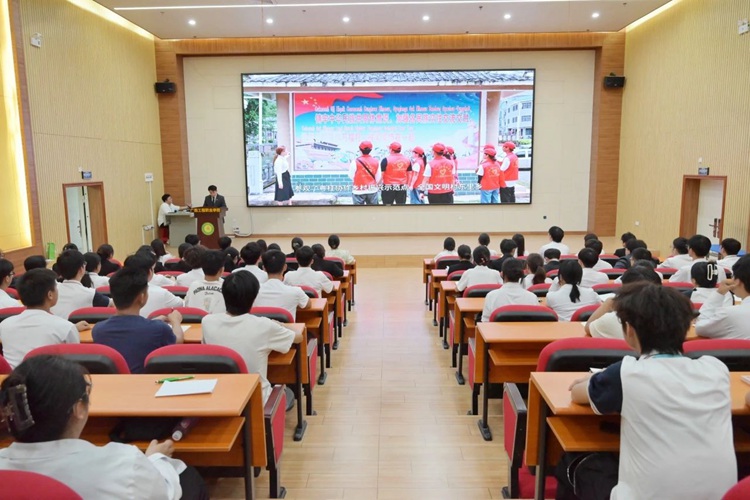 周培分享主題《青春為中國式現(xiàn)代化挺膺擔(dān)當(dāng)》。列寧巖、魁星樓、右江革命紀(jì)念館與百谷紅軍村,這些紅色革命紀(jì)念場所,如同一座座永不褪色“精神豐碑”,同學(xué)們通過參觀這些紅色革命紀(jì)念場所,重溫黨的光輝歷程,傳承革命精神。通過走進(jìn)芒果園、深入社區(qū)開展助力鄉(xiāng)村振興志愿服務(wù),增強(qiáng)歷史使命感和責(zé)任感,激發(fā)青年學(xué)生積極投身社會實(shí)踐,助力鄉(xiāng)村振興,繪就鄉(xiāng)村振興藍(lán)圖。
