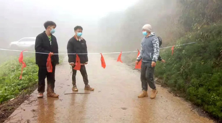 黃金雍,20級(jí)建筑室內(nèi)設(shè)計(jì)2班,在百色市田林縣浪平鄉(xiāng)香維村參加疫情防控志愿服務(wù)活動(dòng)