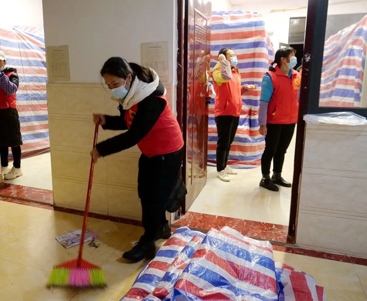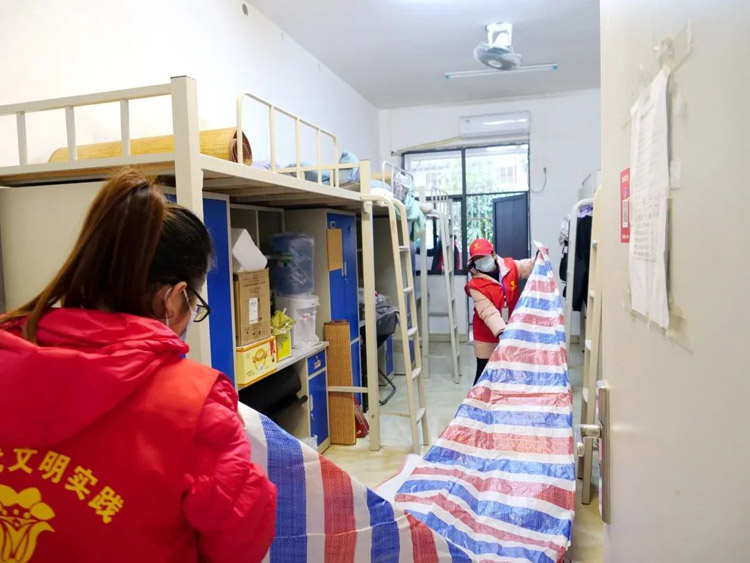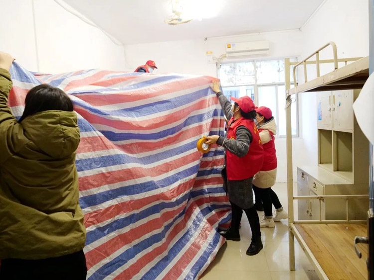 志愿者和老師們有序分工,各負(fù)其責(zé),行動迅速,爭分奪秒,晝夜不休,進(jìn)行衛(wèi)生打掃、物品處置等,有條不紊地把臨時隔離點建設(shè)工作做實做細(xì)做好。