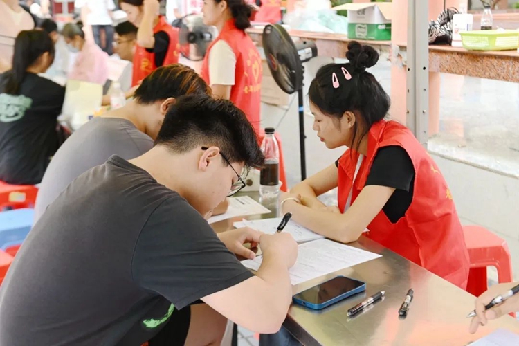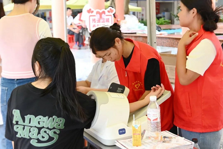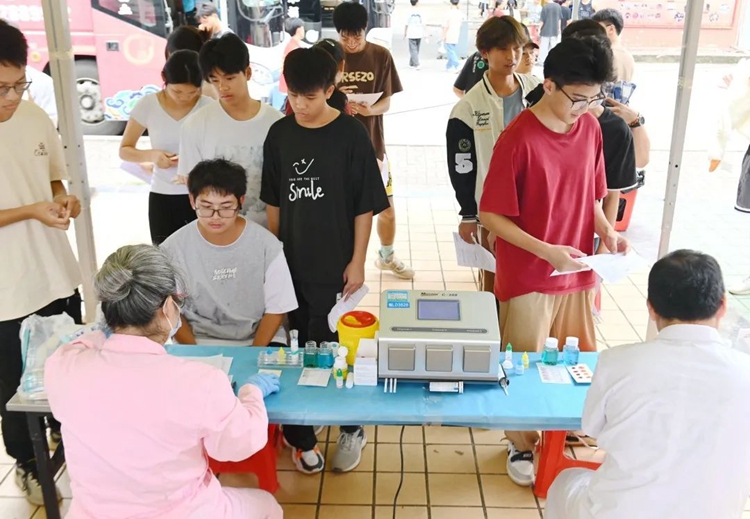 活動(dòng)當(dāng)天,獻(xiàn)血車早早地停在了校園內(nèi),志愿者在現(xiàn)場(chǎng)積極引導(dǎo)獻(xiàn)血者們有序填表、測(cè)量血壓脈搏、健康咨詢和血液初篩等步驟后,登上獻(xiàn)血車采血,保障了活動(dòng)的順利進(jìn)行。