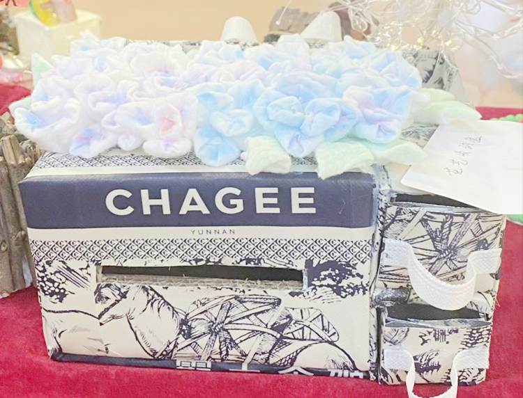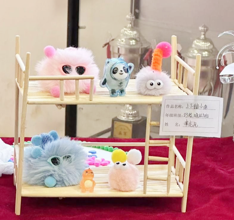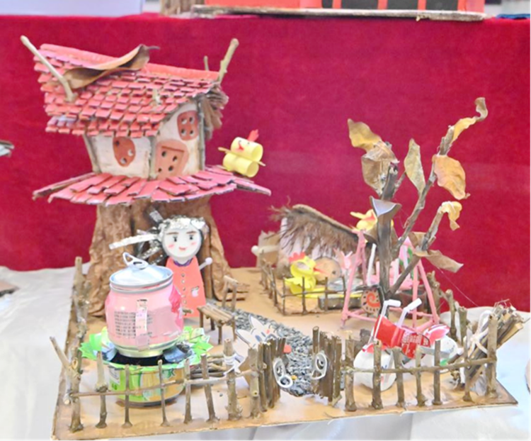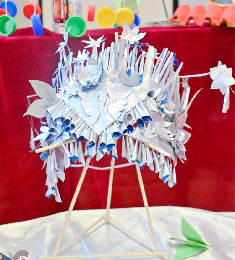 在此次活動(dòng)中,各班同學(xué)積極參與,每一件作品都是以生活中毫不起眼的廢舊物品做成的。