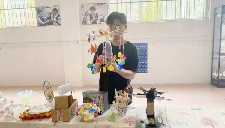 瞧!紙板箱、一次性筷子、塑料瓶、塑料袋、舊毛線等生活中隨處可見的廢品,經(jīng)過(guò)同學(xué)們的奇思妙想,被制作成盆栽、花卉、火箭模型、小房屋等各種各樣精巧的小手工,既能節(jié)約資源,促進(jìn)環(huán)保,而且還具有觀賞性、實(shí)用性。