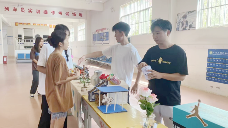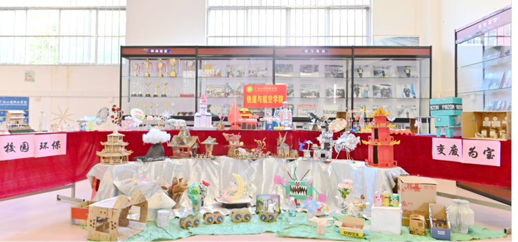 為了豐富校園文化生活,提高同學(xué)們的環(huán)保意識(shí),增強(qiáng)環(huán)保理念,養(yǎng)成節(jié)約資源、保護(hù)環(huán)境的良好習(xí)慣,2023年11月5日,我校鐵道與航空學(xué)院舉辦“校園環(huán)保 變廢為寶”主題環(huán)保手工藝品制作大賽,同學(xué)們的參賽作品在鐵道與航空學(xué)院實(shí)訓(xùn)樓一樓展出。