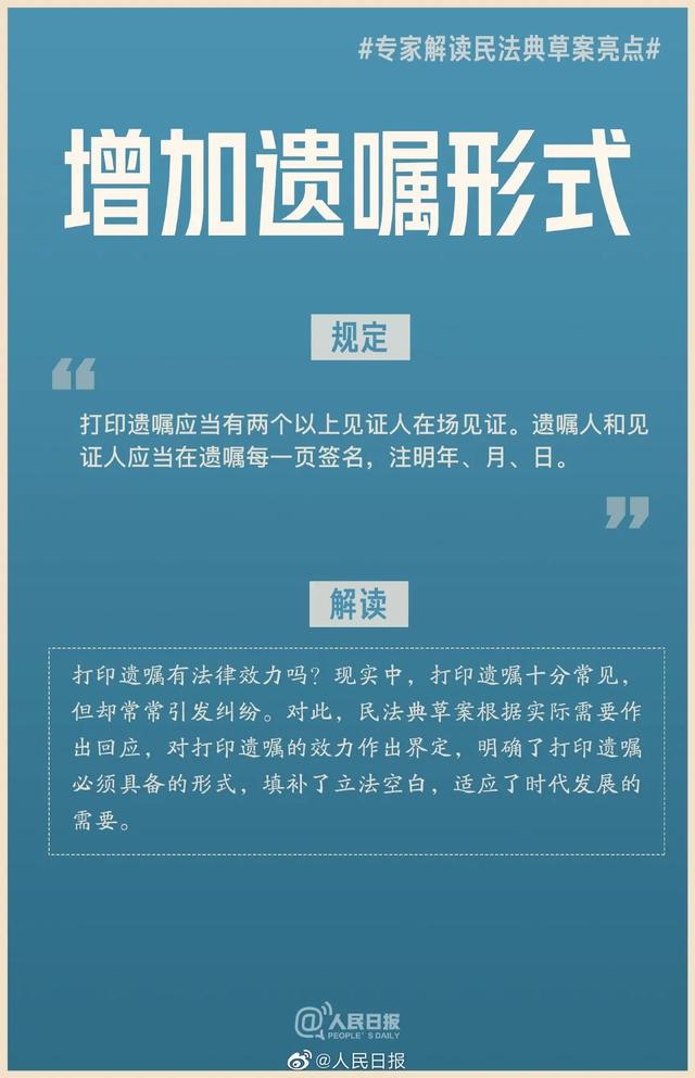 解讀:打印遺囑有法律效力嗎?現(xiàn)實(shí)中,打印遺囑十分常見(jiàn),但卻常常引發(fā)糾紛。對(duì)此,民法典草案根據(jù)實(shí)際需要作出回應(yīng),對(duì)打印遺囑的效力作出界定,明確了打印遺囑必須具備的形式,填補(bǔ)了立法空白,適應(yīng)了時(shí)代發(fā)展的需要。