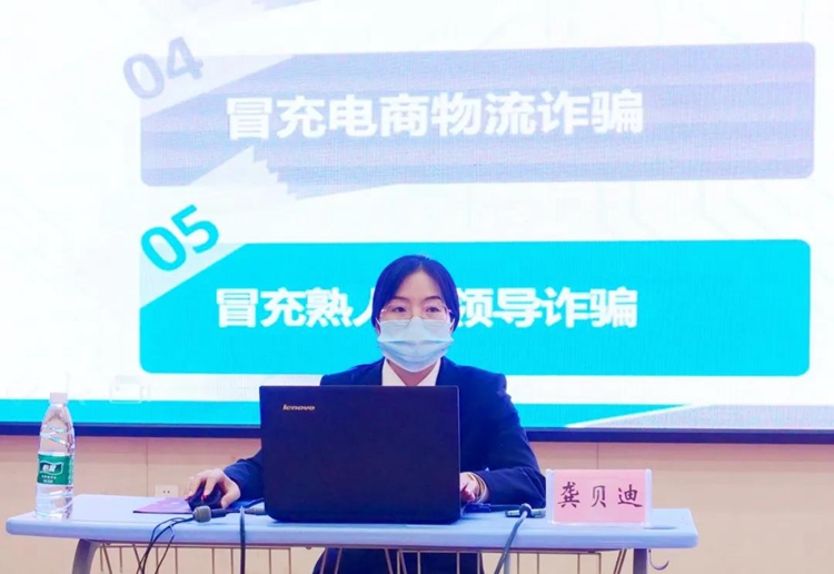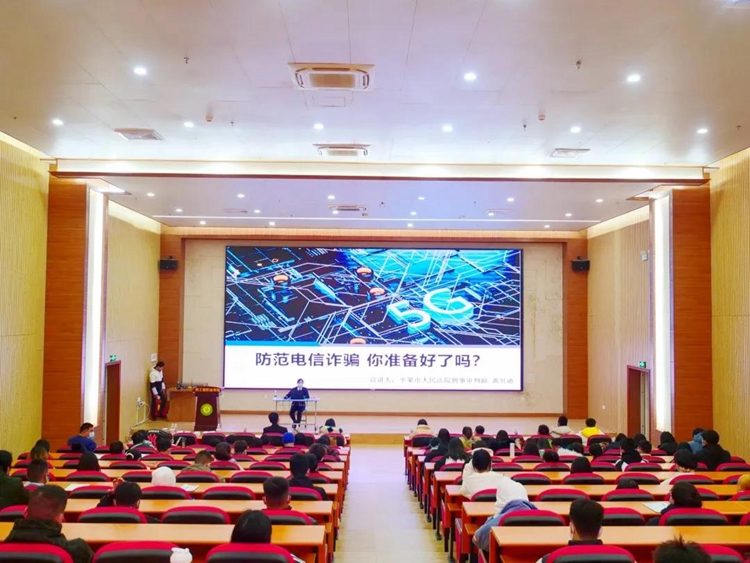 活動(dòng)中,平果市人民法院刑事審判庭龔貝迪同志運(yùn)用豐富、生動(dòng)的案例,直觀簡明地為師生們講解了幾種常見的詐騙手段,用發(fā)生在身邊的真實(shí)案例告訴同學(xué)們增加反詐騙知識的重要性,敲響了防詐騙的警鐘,并提醒師生們,預(yù)防詐騙要堅(jiān)持不輕信、不透露、不匯款、不轉(zhuǎn)賬,堅(jiān)決不給不法分子可乘之機(jī)。