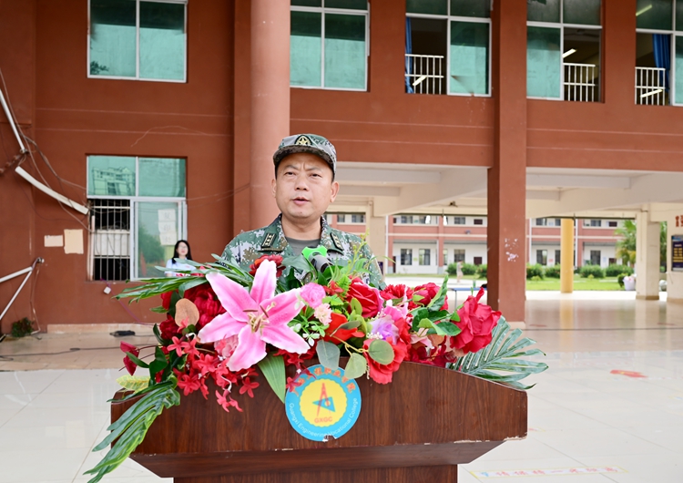 平果市人民武裝部部長(zhǎng)李甫講話,他指出,通過(guò)軍訓(xùn),同學(xué)們可以學(xué)到基本的軍事知識(shí)和軍事技能,強(qiáng)健體魄,鍛煉意志,培養(yǎng)嚴(yán)明的組織紀(jì)律性和吃苦耐勞、團(tuán)結(jié)拼搏、敢于進(jìn)取、永不言敗的精神,增強(qiáng)現(xiàn)代國(guó)防觀念和保衛(wèi)祖國(guó)、建設(shè)祖國(guó)的堅(jiān)強(qiáng)信念。這既是學(xué)生成才的需要,也是國(guó)防建設(shè)的需要,乃至每個(gè)公民的義務(wù)和責(zé)任。